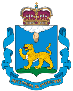 Герб Псковской области утвержден 28 декабря 2018 года. Описание герба: "В лазоревом поле вверху – выходящая вниз из облаков благословляющая правая длань (десница) телесного цвета; внизу – идущий по зеленой земле барс с теневой (золотой) окраской пятен, серебряной грудью, червленым языком, серебряными когтями и зубами. Щит увенчан территориальной короной особого вида. Девиз «ПОТЯГНЕМЪ ЗА ОТЕЧЕСТВО» начертан золотыми литерами на лазоревой ленте." (Закон Псковской области "О гербе Псковской области", статья 1) * * * Девиз основан на фразе, которую произнес псковский князь Довмонт (в крещении Тимофей) в 1266 году при сборе ополчения против литовского князя Герденя: "…братия моя… потягнете за дом Святой Троицы и за святые церкви, за свое отечество". В современном прочтении данный девиз можно понимать так: "Постоим за Отечество". |